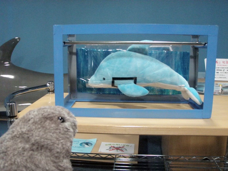 北館2Fの発見コーナーで係員の人がイルカの運び方を教えてくれたズモ。